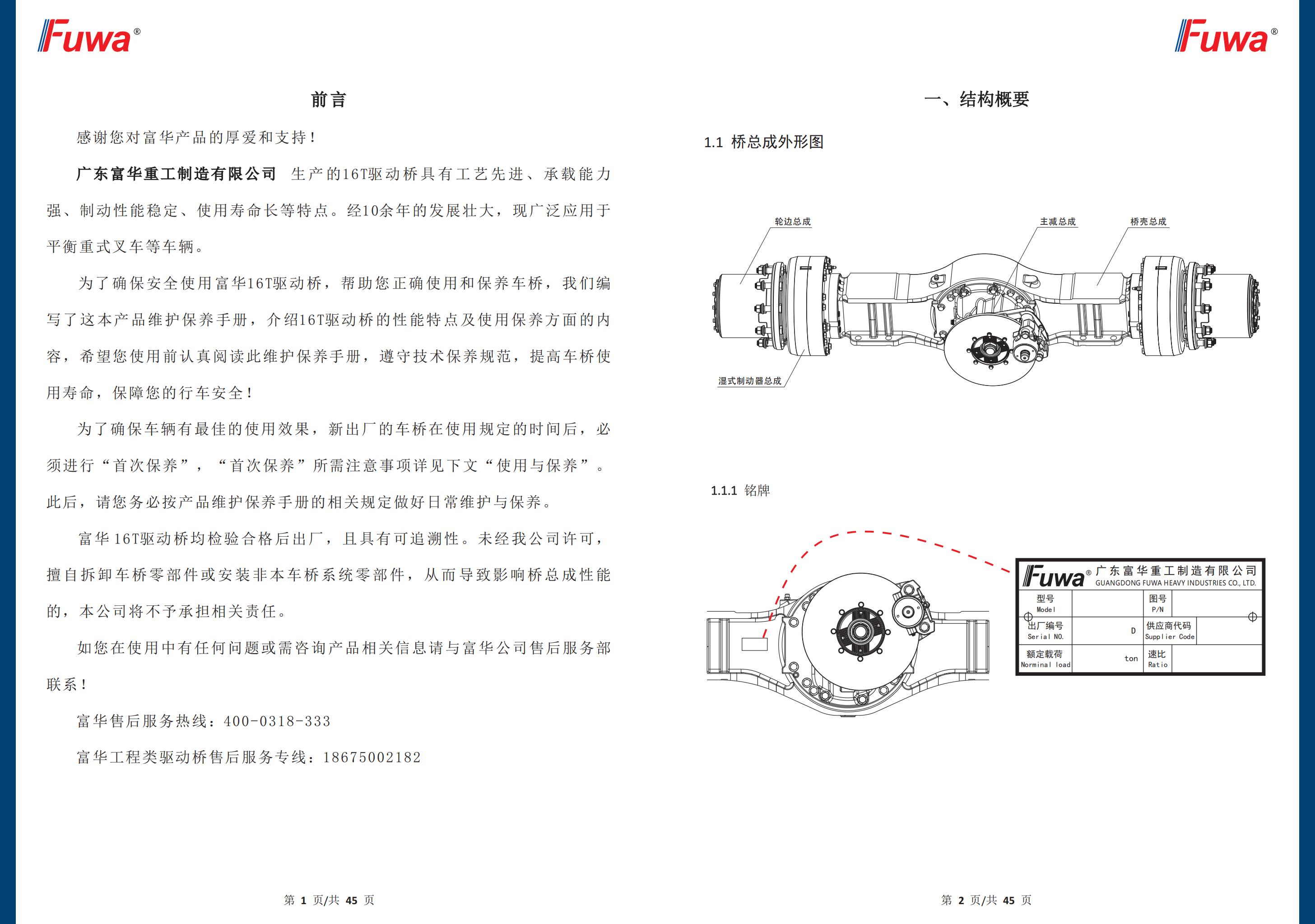 叉車驅(qū)動(dòng)橋產(chǎn)品維護(hù)保養(yǎng)手冊(cè)
