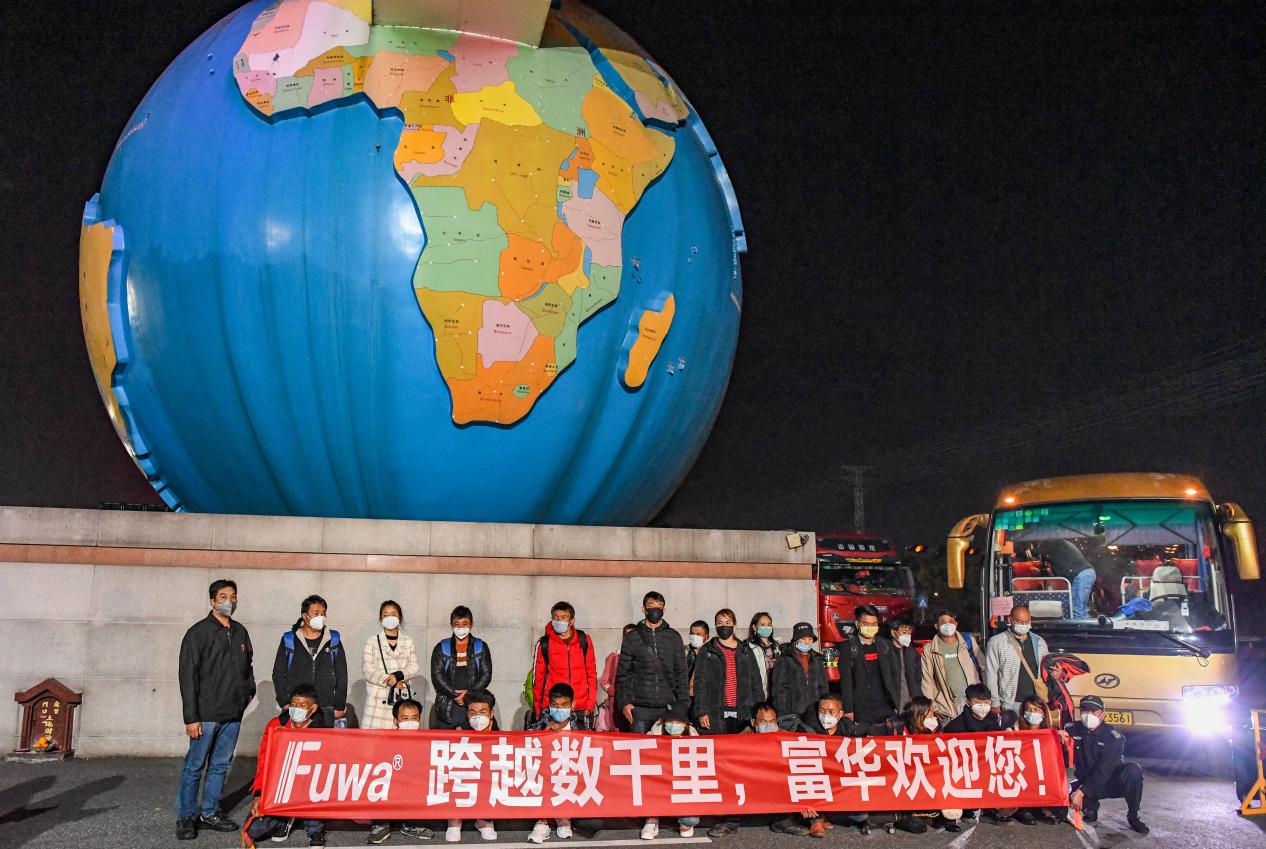 2月25日凌晨兩點時分,一輛載著25名富華員工的大巴車安全抵達廣東富華機械裝備制造有限公司。員工們背滿行李,身顯疲憊地走下車,雖然已是深夜但大家依舊面帶笑容?!案兄x公司不遠千里接我們回來,真的非常感謝!”一位戴著帽子皮膚黝黑的員工激動地說到。